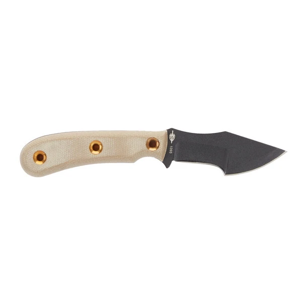 Als Klingenmaterial wird ein nicht rostfreier Kohlenstoffstahl (1095) verwendet. Zum Schutz vor Korrosion ist der Stahl mit einer abriebfesten Pulverbeschichtung versehen. Er ist sehr schnitthaltig, lässt sich bei Bedarf allerdings auch gut nachschärfen. Ein echter Pluspunkt bei einem Gebrauchsmesser! Der Messerrücken ist so gearbeitet, dass du bei Bedarf mit deinem Feuerstahl leicht Funken schlagen kannst.