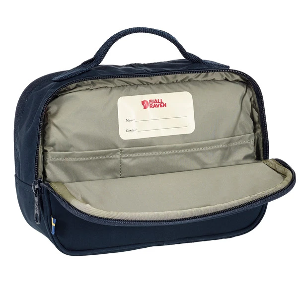 Aufgeteilt ist die Kanken Toiletry Bag in ein großes und ein kleines Hauptfach. Das große Hauptfach auf der Front bietet genügend Platz für Duschgel, Shampoo und Zahnpasta. In dem Kleineren kannst du besonders gut die Hygieneartikel verpacken, an die du unterwegs schnell mal ran musst.