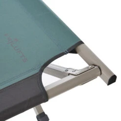 Hier bettest du dich richtig. Das Feldbett kannst du dank Hebelwirkung schnell und einfach aufbauen. Dank der Hebel-Mechanik ist zudem eine ideale Spannung des Bezuges bequem zu erreichen.
