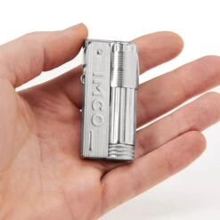 Die österreichische IMCO war einer der beiden ältesten noch existierenden Feuerzeughersteller der Welt. Seit 1918 wurden in der Nähe von Wien, ursprünglich aus abgeschossenen Patronenhülsen, die weltbekannten Benzin-Feuerzeuge hergestellt. Nachdem wichtige Teile für die Herstellung kaputt gingen, musste IMCO allerdings die Produktion einstellen. Der Ruf diese Klassikers war jedoch bis zu den Feuerzeug-Ingenieuren von Windmill in Japan vorgedrungen. Und diese wollten dieses Schmuckstück nicht einfach untergehen lassen. Windmill kaufte nicht nur die Rechte zur Produktion, sondern stellte auch die benötigten Werkzeuge wieder her. Ein Happy End für alle Freunde des ebenso schönen wie praktischen Traditionsfeuerzeugs!