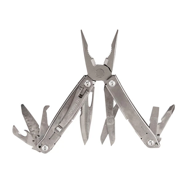Ein integrierter Federmechanismus hält beim Wingman die Zange mit Drahtschneider im geöffneten Zustand offen. Schere und Klinge (mit partiellem Wellenschliff) lassen sich bei geschlossenem Tool mit einer Hand öffnen und arretieren mit einem Liner-Lock. Zu den weiteren Funktionen: Kapselheber / Dosenöffner, 2 Schlitzschrauben-dreher (klein und groß), 1 Kreuzschlitzschraubendreher, Feile mit Lineal (Zoll/cm), Packetöffner, Abisolierklinge,Clip und Öse am Griffende.