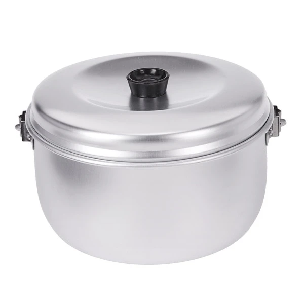 Großer Lagerkessel aus Aluminium, mit klappbarem Henkel und Deckel. Der Topf kann auch mit der Trangia-Griffzange bedient werden und passt auf das kleine Trangia-Sturmkocherset.